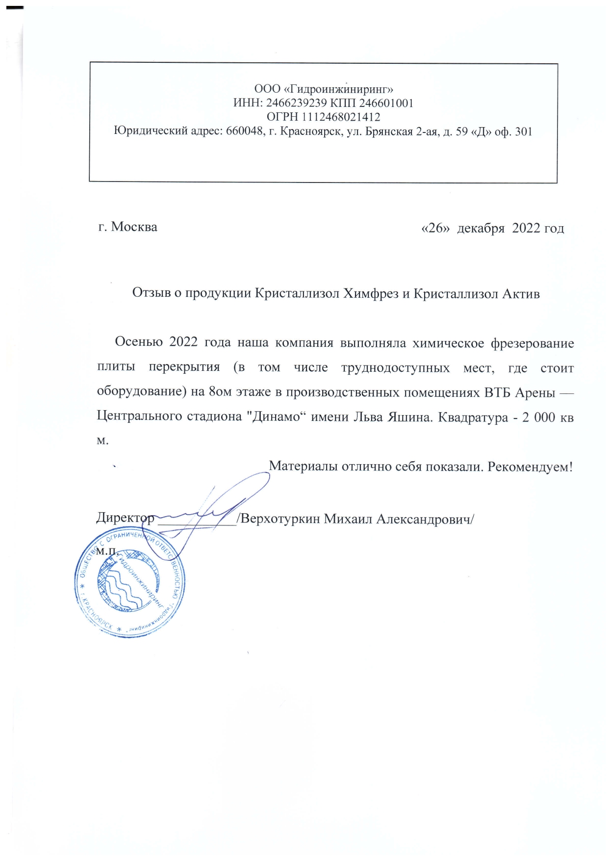 Кристаллизол Химфрез/Актив - фрезерование плиты перекрытия (в том числе труднодоступных мест, где стоит оборудование) на 8ом этаже Квадратура - 2 000 кв м Далее проводилась гидроизоляционная работа Подрядчик - ООО "Гидроинжиниринг" Отзыв на сайте |